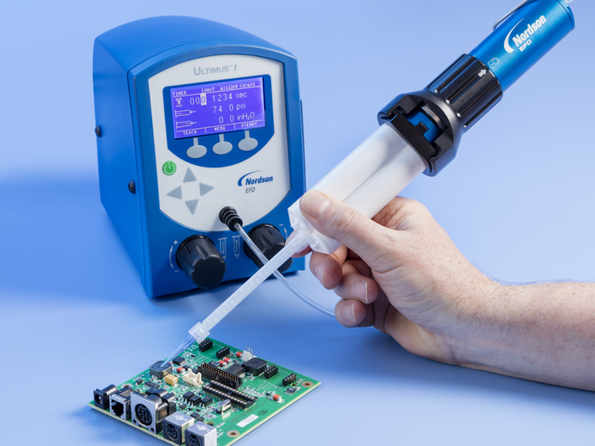 Dispense more accurate, repeatable amounts of two-component materials in 1:1, 2:1, and 4:1 ratios with the Nordson EFD Equalizer™ 2K Dispensing Tool.