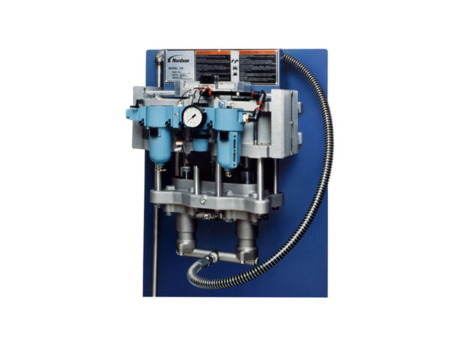 Vertically mounted, air-driven, dual-piston pump engineered specifically for container coating applications.
