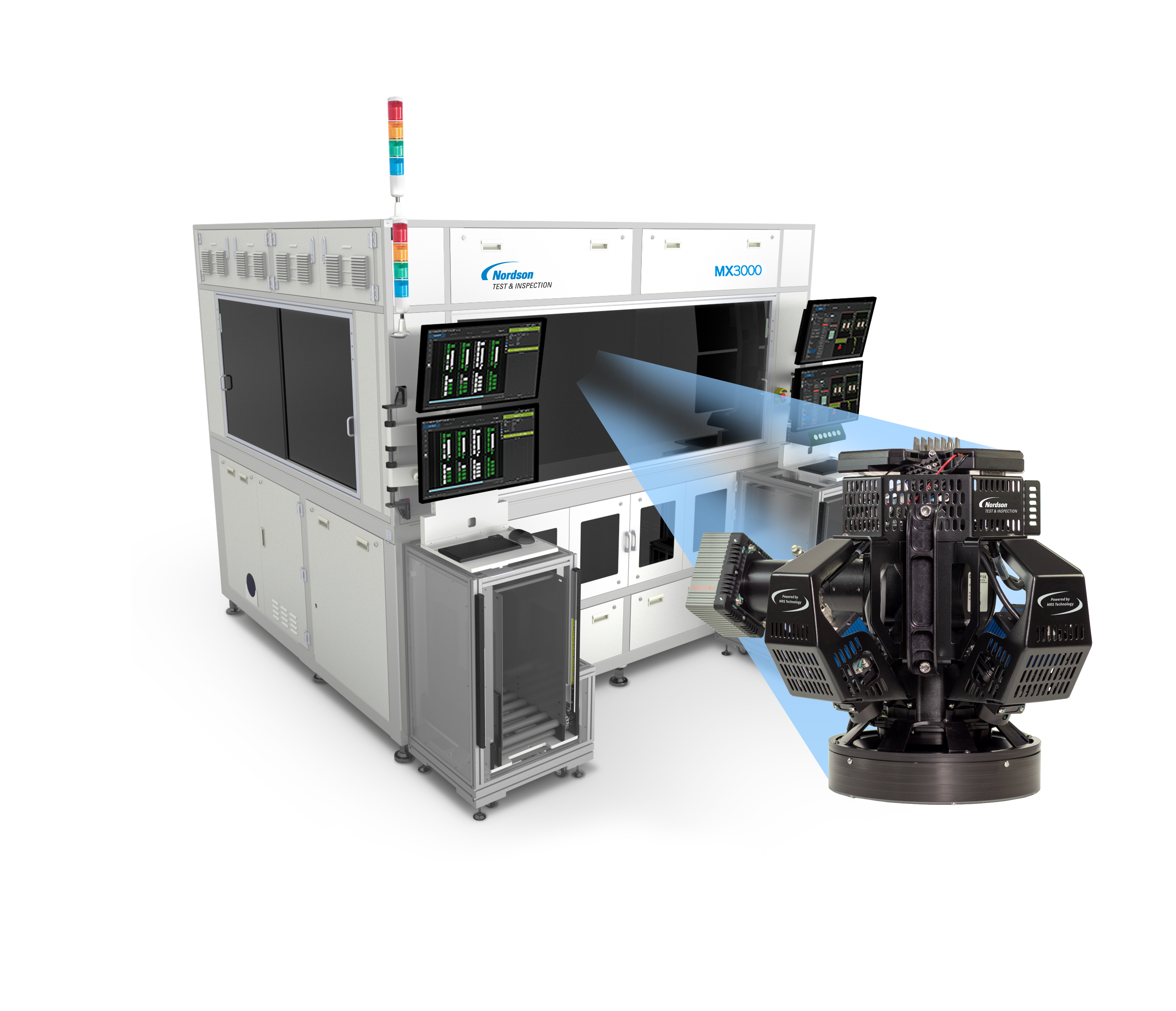 The MX3000™ is powered by CyberOptics’ breakthrough 3D sensing technology comprising of two MRS® Sensors delivering simultaneous dual-sided automated final vision inspection for singulated memory modules – for metrology grade accuracy at production speed.